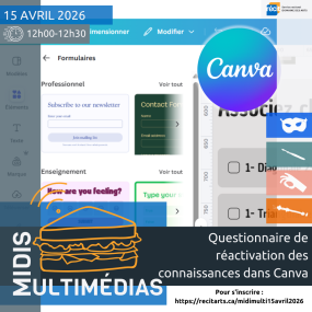 Le sujet du Midi multimédia du 15 avril 2026 est la mise en place d’un questionnaire d’activation des connaissances antérieures avec Canva.