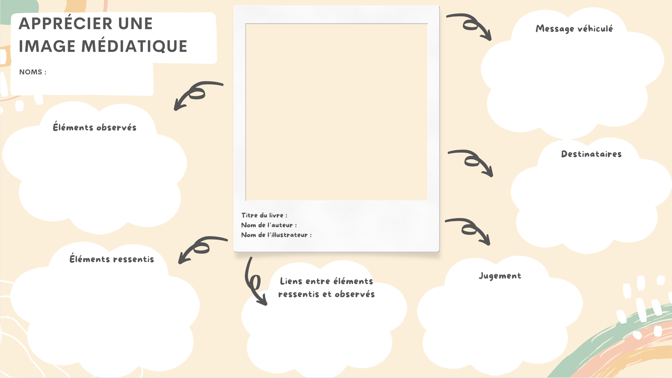 Un canevas pour apprécier, seul ou en équipe, une image médiatique, plus particulièrement une couverture d’album jeunesse.