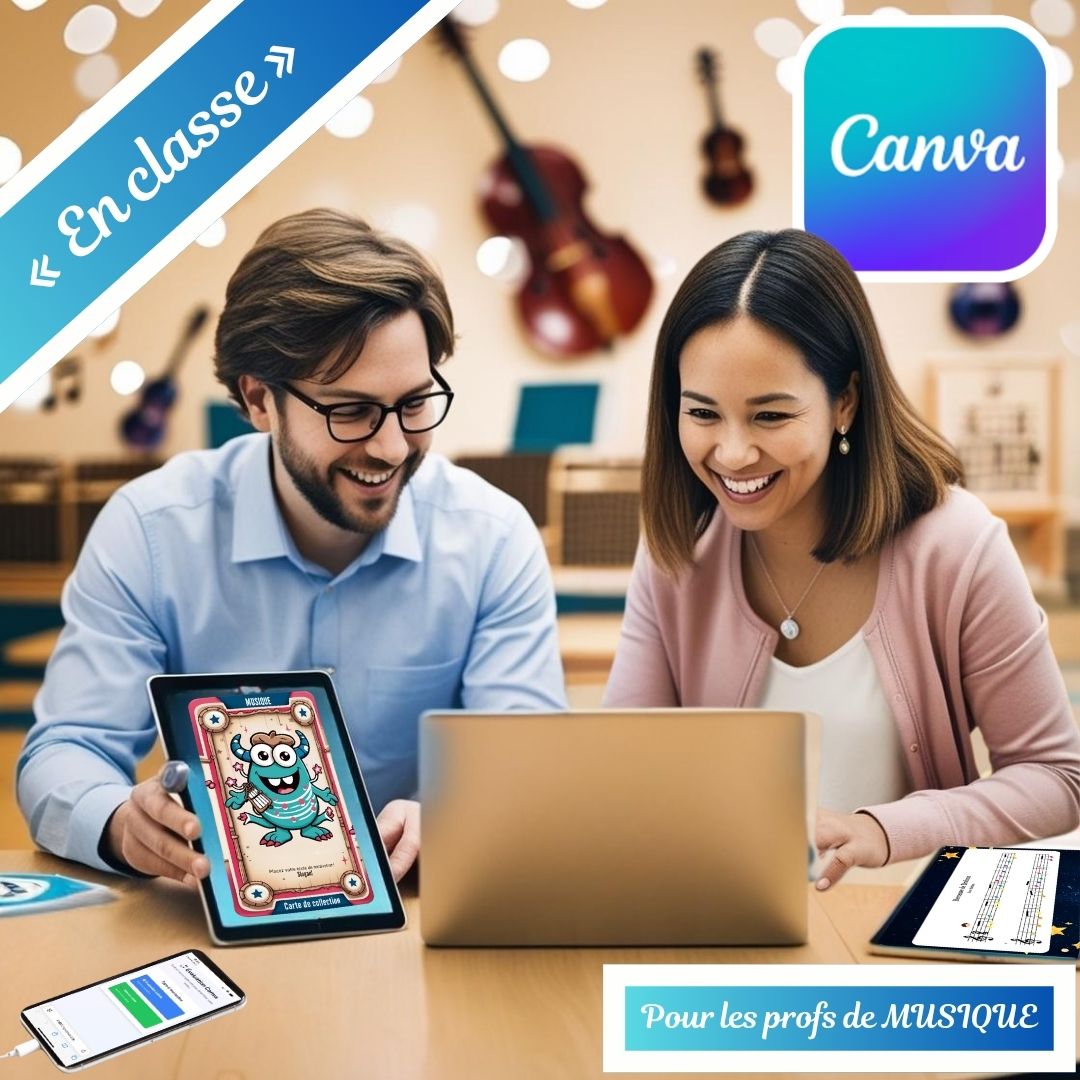 Dans « Canva pour les profs de musique « En classe » », nous verrons des fonctionnalités de Canva qui permettront de créer :