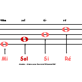 Affiche de notes sur la portée en clé de sol. Dimension : 4 pages format lettre - portrait de large par 1 de haut